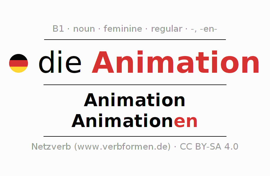 - Plural: die Animationen, der Animationen, den Animationen, die Animationen