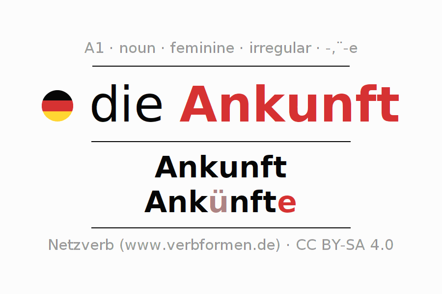 - Singular: die Ankunft, der Ankunft, der Ankunft, die Ankunft
