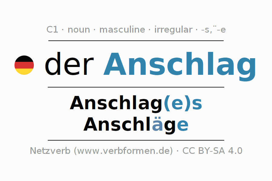 - Plural: die Anschläge, der Anschläge, den Anschlägen, die Anschläge