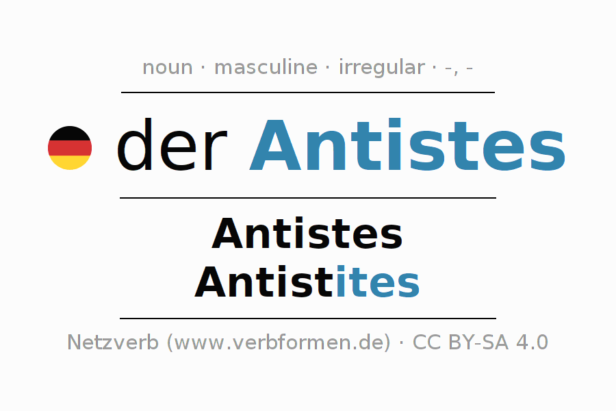 - Singular: der Antistes, des Antistes, dem Antistes, den Antistes