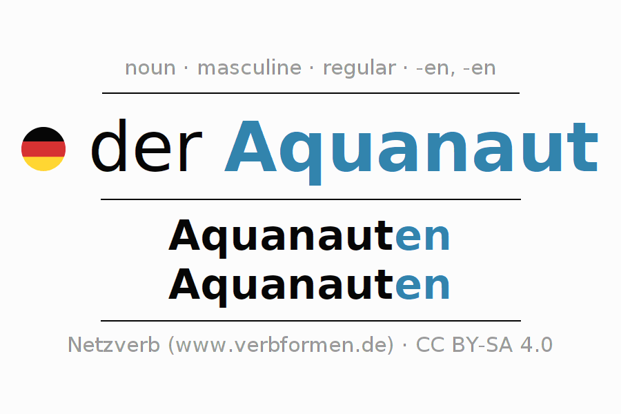 - Singular: der Aquanaut, des Aquanauten, dem Aquanauten, den Aquanauten
