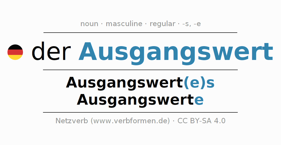 - Plural: die Ausgangswerte, der Ausgangswerte, den Ausgangswerten, die Ausgangswerte
