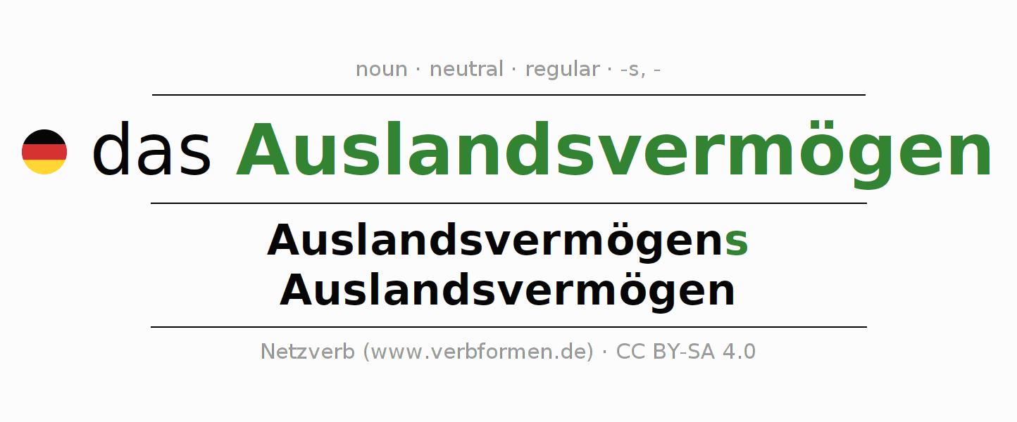 - Singular: das Auslandsvermögen, des Auslandsvermögens, dem Auslandsvermögen, das Auslandsvermögen
