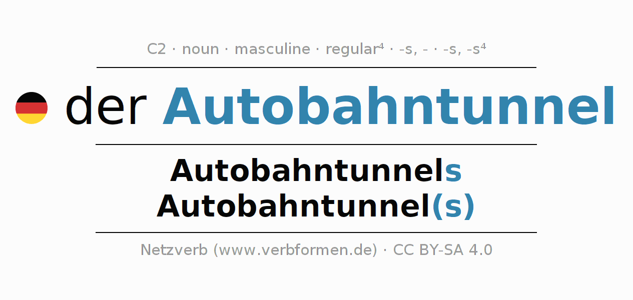 - Singular: der Autobahntunnel, des Autobahntunnels, dem Autobahntunnel, den Autobahntunnel