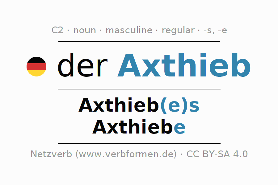 - Plural: die Axthiebe, der Axthiebe, den Axthieben, die Axthiebe