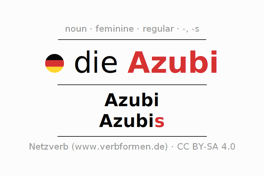 - Plural: die Azubis, der Azubis, den Azubis, die Azubis