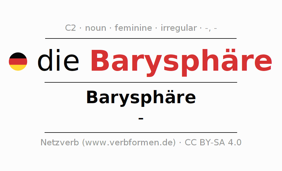 - Singular: die Barysphäre, der Barysphäre, der Barysphäre, die Barysphäre