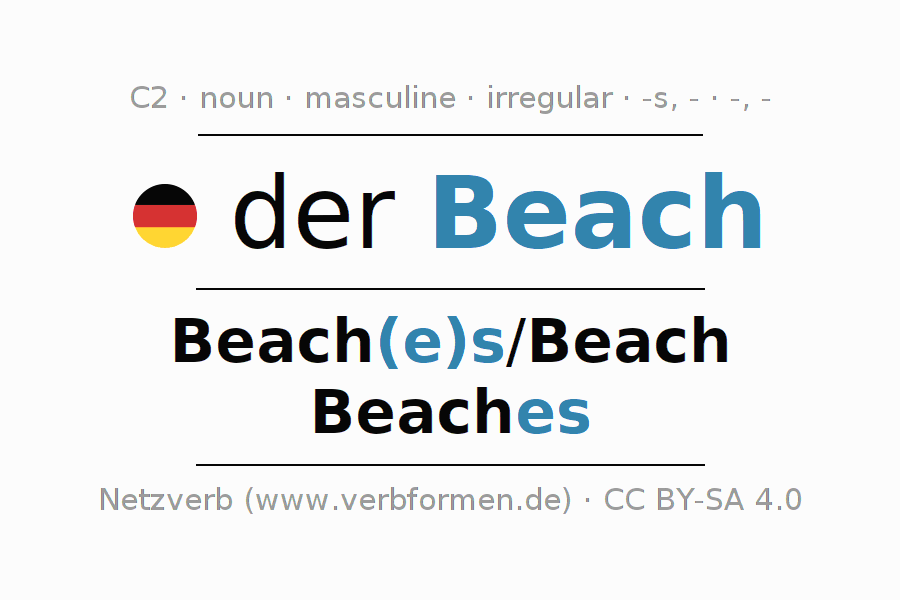 - Plural: die Beaches, der Beaches, den Beaches, die Beaches
