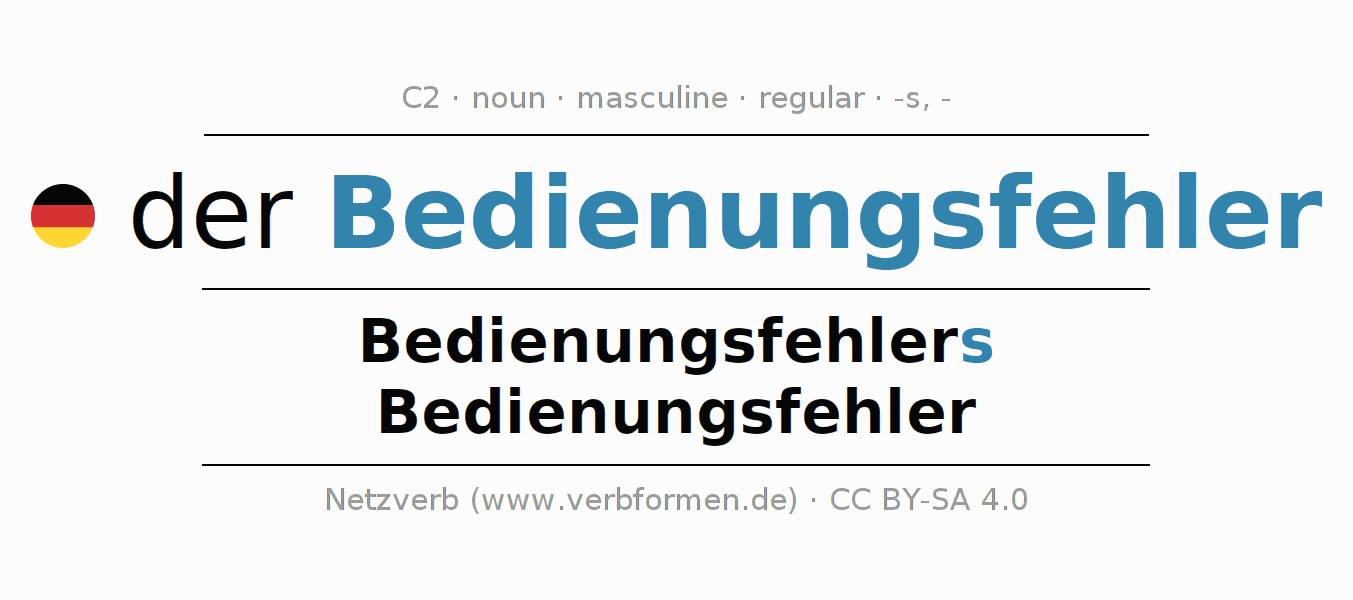 - Singular: der Bedienungsfehler, des Bedienungsfehlers, dem Bedienungsfehler, den Bedienungsfehler