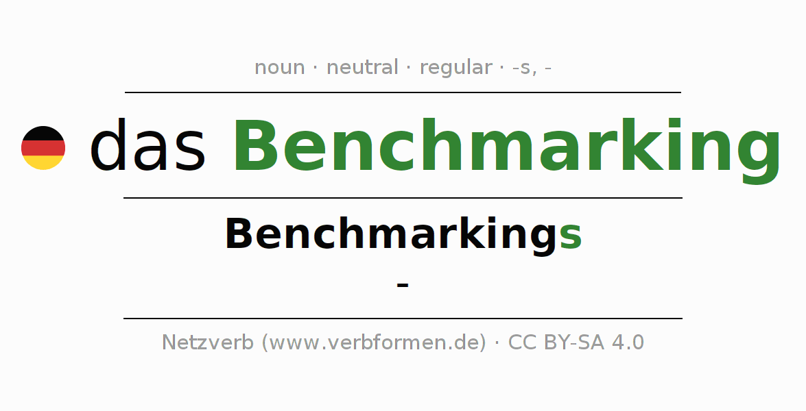 - Singular: das Benchmarking, des Benchmarkings, dem Benchmarking, das Benchmarking
