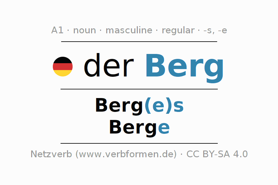 - Plural: die Berge, der Berge, den Bergen, die Berge