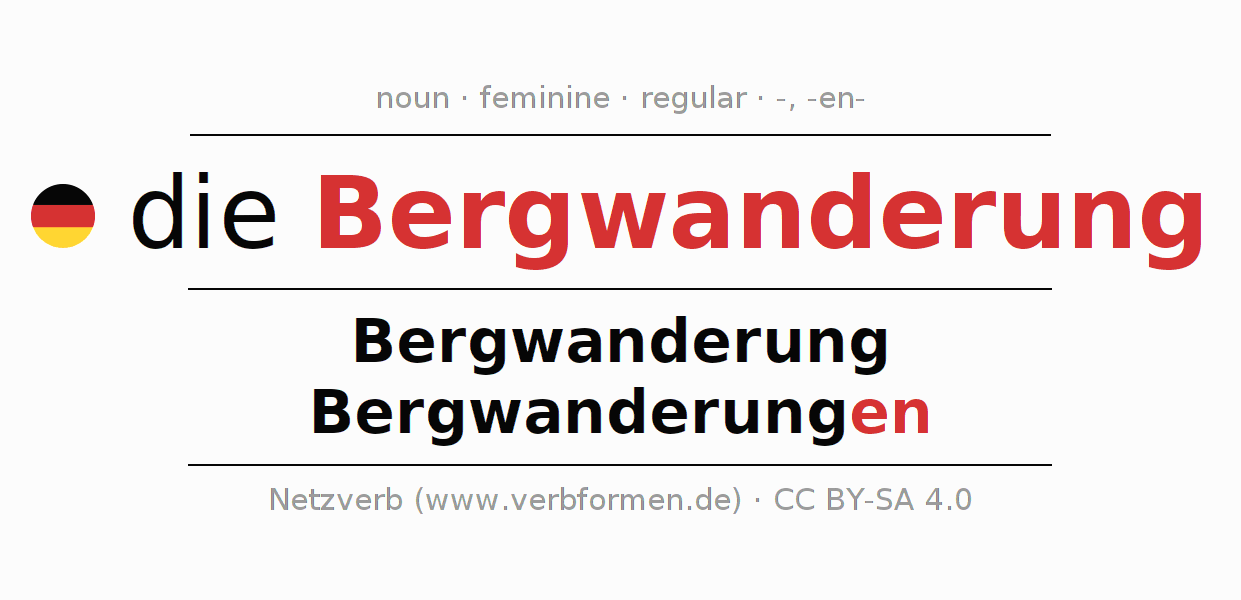 - Singular: die Bergwanderung, der Bergwanderung, der Bergwanderung, die Bergwanderung