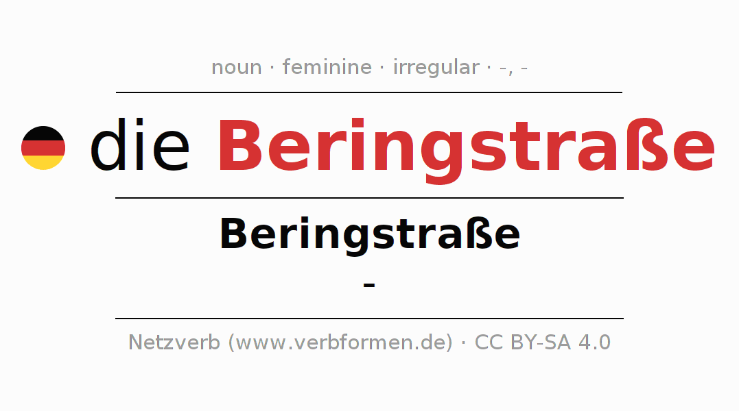 The declension of Beringstraße as a table with all forms in singular (singular) and plural (plural) and in all four cases nominative (1st case), genitive (2nd case), dative (3rd case) and accusative (4th case). Especially for German learners the correct declension of the word Beringstraße is crucial.