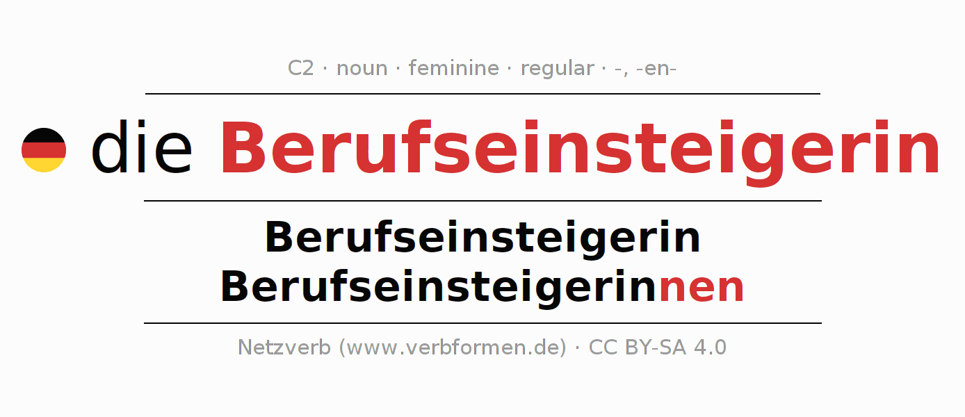 - Singular: die Berufseinsteigerin, der Berufseinsteigerin, der Berufseinsteigerin, die Berufseinsteigerin