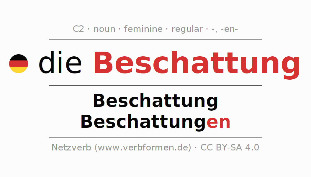 - Singular: die Beschattung, der Beschattung, der Beschattung, die Beschattung