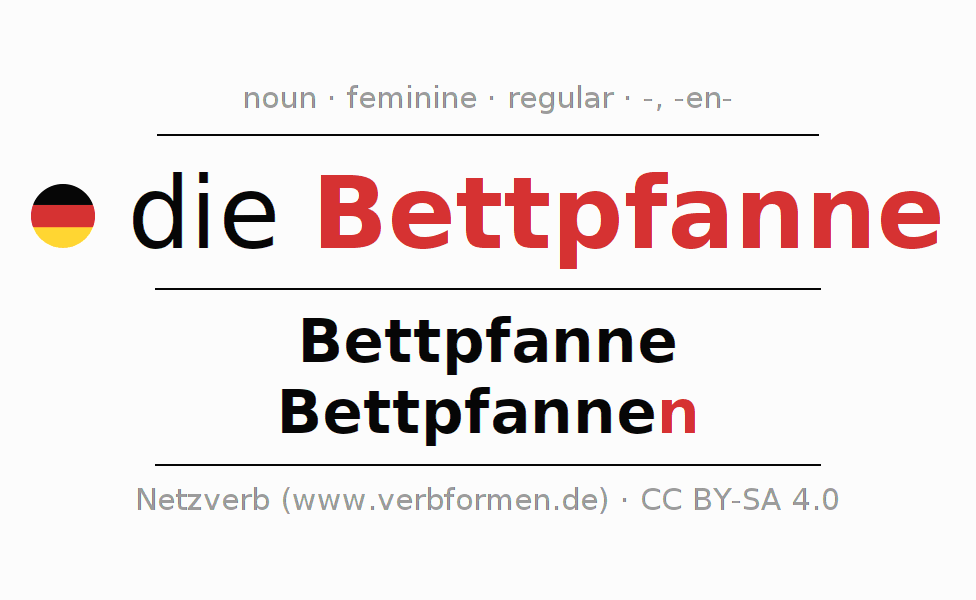 - Singular: die Bettpfanne, der Bettpfanne, der Bettpfanne, die Bettpfanne