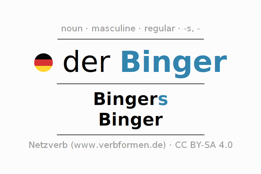 - Plural: die Binger, der Binger, den Bingern, die Binger