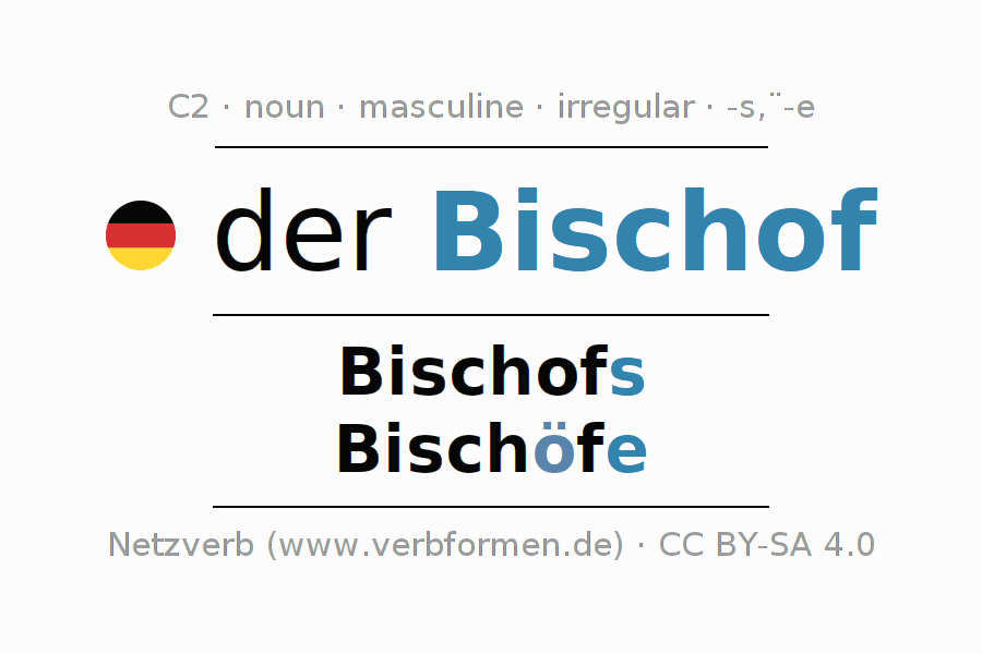 - Singular: der Bischof, des Bischofs, dem Bischof, den Bischof
