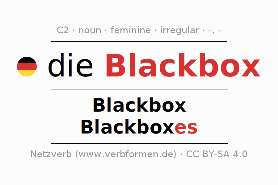 - Plural: die Blackboxes, der Blackboxes, den Blackboxes, die Blackboxes