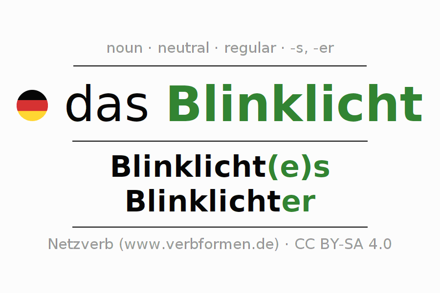 - Plural: die Blinklichter, der Blinklichter, den Blinklichtern, die Blinklichter