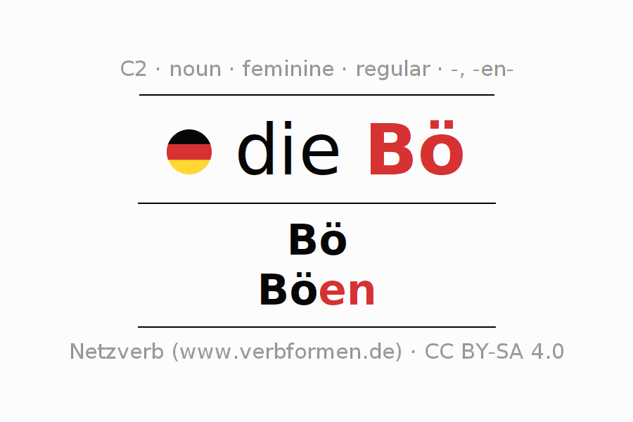 - Singular: die Bö, der Bö, der Bö, die Bö