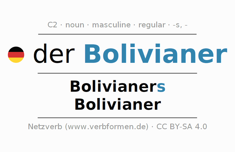 - Plural: die Bolivianer, der Bolivianer, den Bolivianern, die Bolivianer