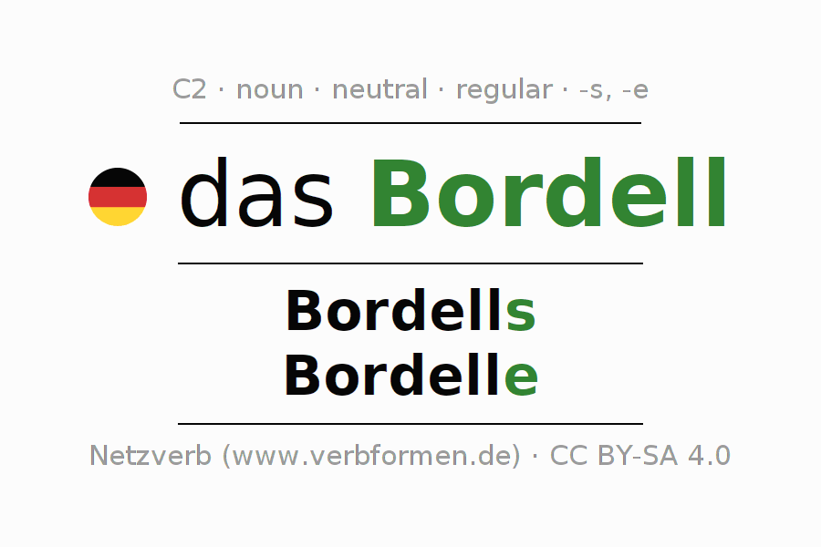 - Singular: das Bordell, des Bordells, dem Bordell, das Bordell