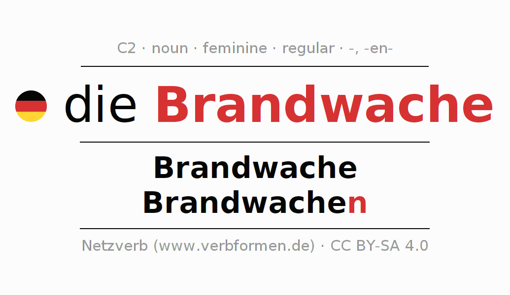 - Plural: die Brandwachen, der Brandwachen, den Brandwachen, die Brandwachen