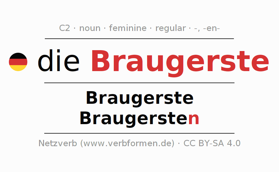 - Singular: die Braugerste, der Braugerste, der Braugerste, die Braugerste