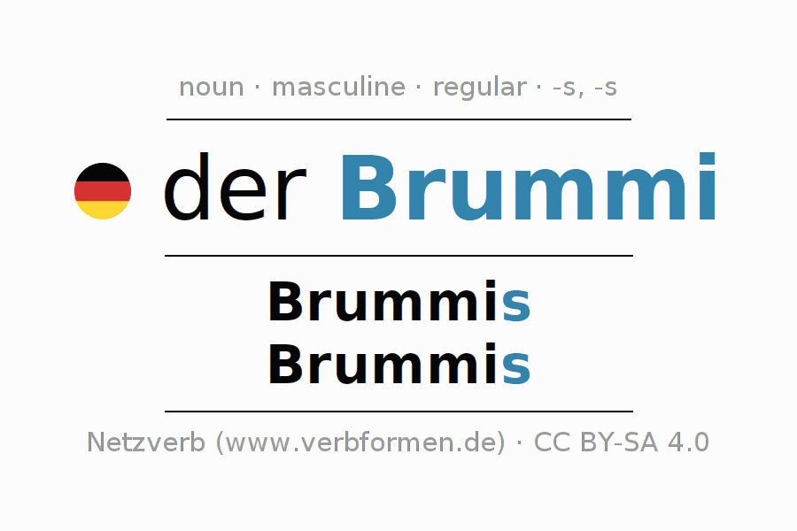 - Singular: der Brummi, des Brummis, dem Brummi, den Brummi