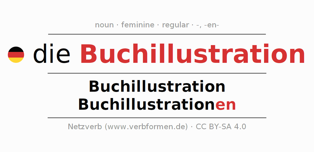 - Singular: die Buchillustration, der Buchillustration, der Buchillustration, die Buchillustration