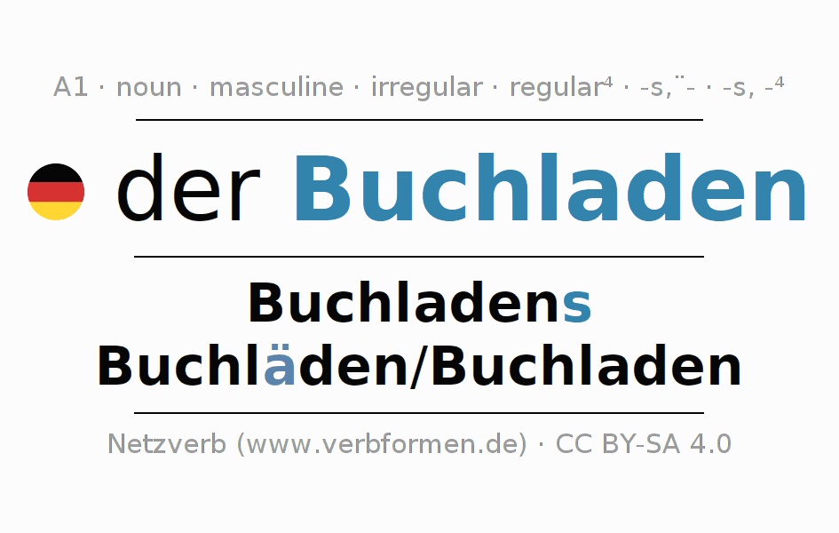 - Singular: der Buchladen, des Buchladens, dem Buchladen, den Buchladen