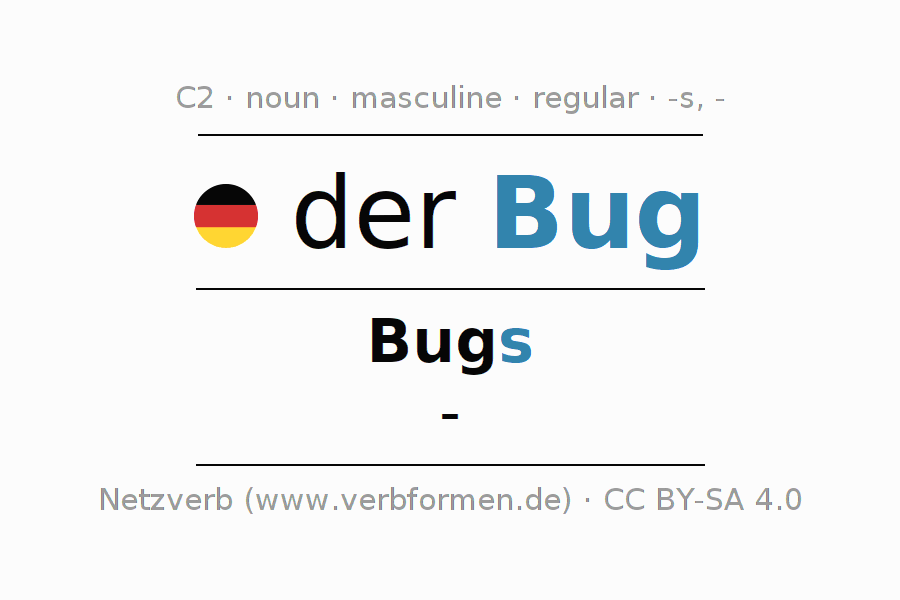 - Singular: der Bug, des Bugs, dem Bug, den Bug