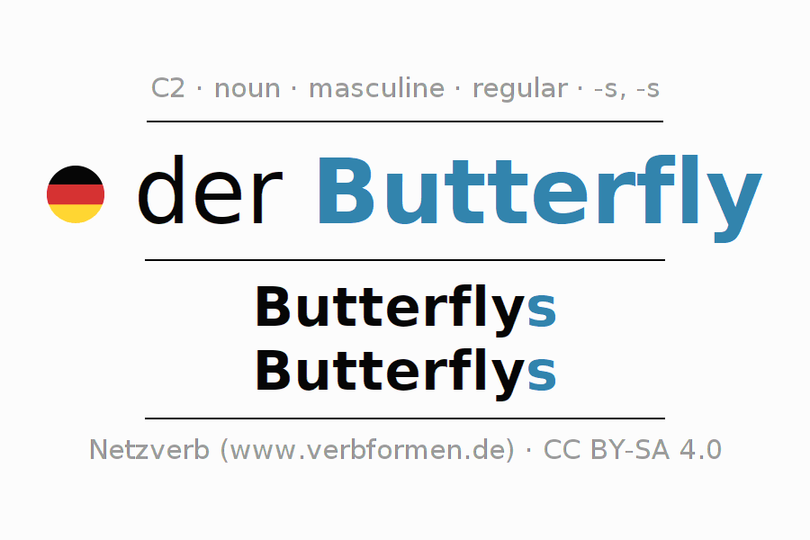 - Singular: der Butterfly, des Butterflys, dem Butterfly, den Butterfly