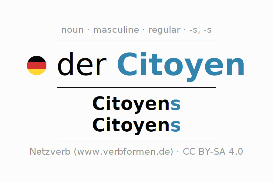 - Plural: die Citoyens, der Citoyens, den Citoyens, die Citoyens