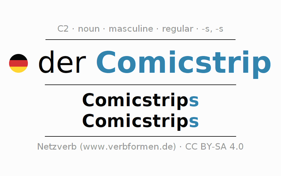 - Singular: der Comicstrip, des Comicstrips, dem Comicstrip, den Comicstrip