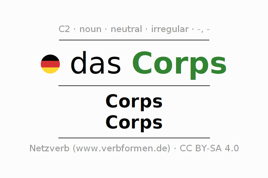 - Plural: die Corps, der Corps, den Corps, die Corps