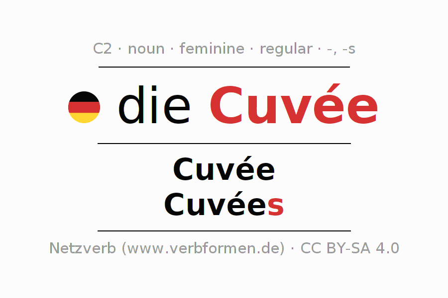 - Plural: die Cuvées, der Cuvées, den Cuvées, die Cuvées