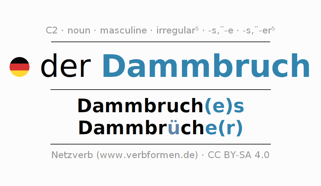 | Nom. | der Dammbruch | die Dammbrüche(r) |