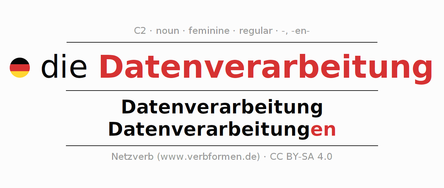 - Singular: die Datenverarbeitung, der Datenverarbeitung, der Datenverarbeitung, die Datenverarbeitung