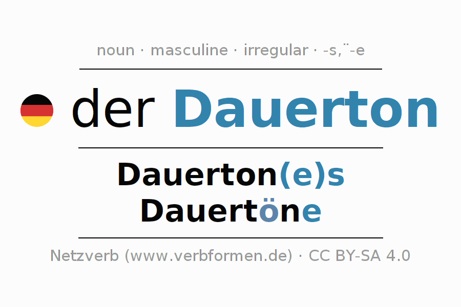 - Singular: der Dauerton, des Dauerton(e)s, dem Dauerton(e), den Dauerton