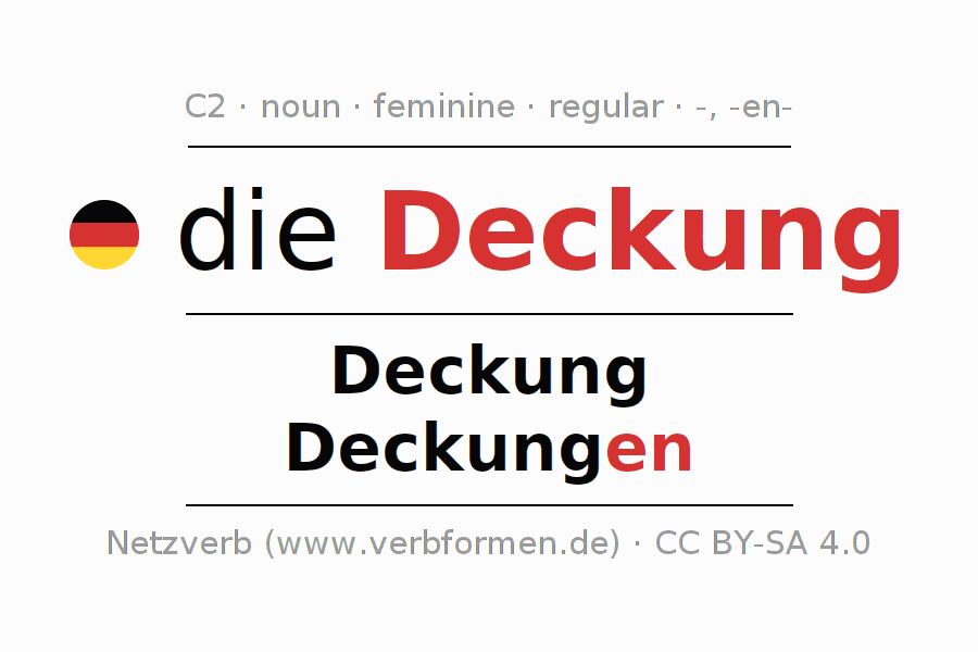 - Plural: die Deckungen, der Deckungen, den Deckungen, die Deckungen