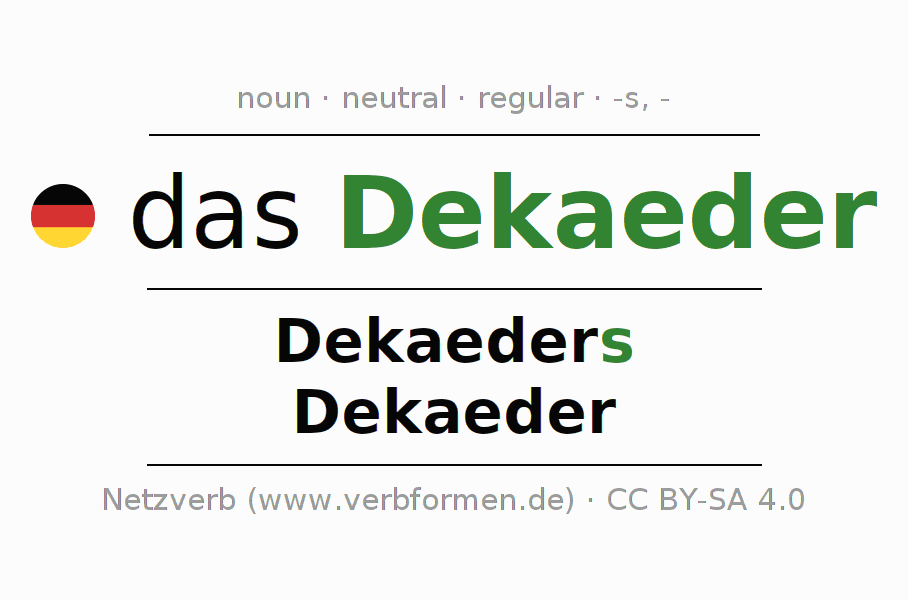 - Singular: das Dekaeder, des Dekaeders, dem Dekaeder, das Dekaeder