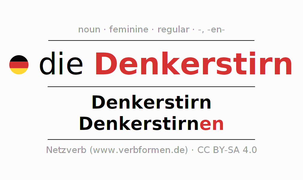 - Singular: die Denkerstirn, der Denkerstirn, der Denkerstirn, die Denkerstirn