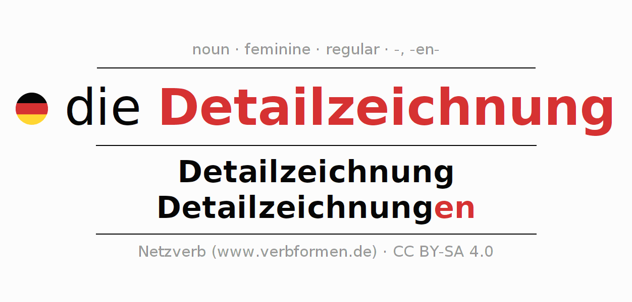 - Singular: die Detailzeichnung, der Detailzeichnung, der Detailzeichnung, die Detailzeichnung