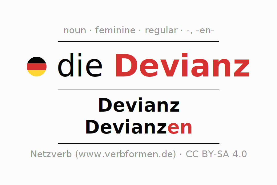 - Plural: die Devianzen, der Devianzen, den Devianzen, die Devianzen