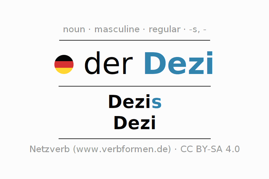 - Singular: der Dezi, des Dezis, dem Dezi, den Dezi