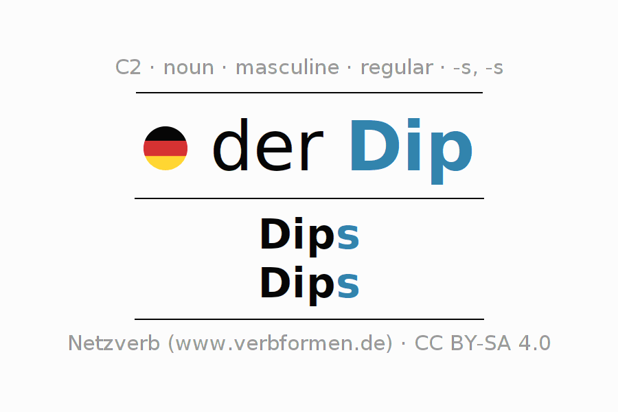 - Singular: der Dip, des Dips, dem Dip, den Dip