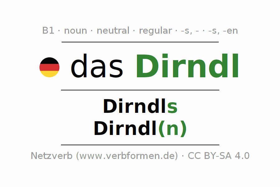 - Singular: das Dirndl, des Dirndls, dem Dirndl, das Dirndl