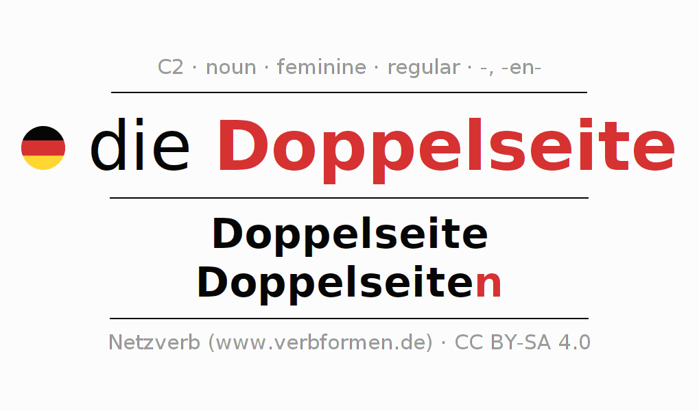 - Singular: die Doppelseite, der Doppelseite, der Doppelseite, die Doppelseite